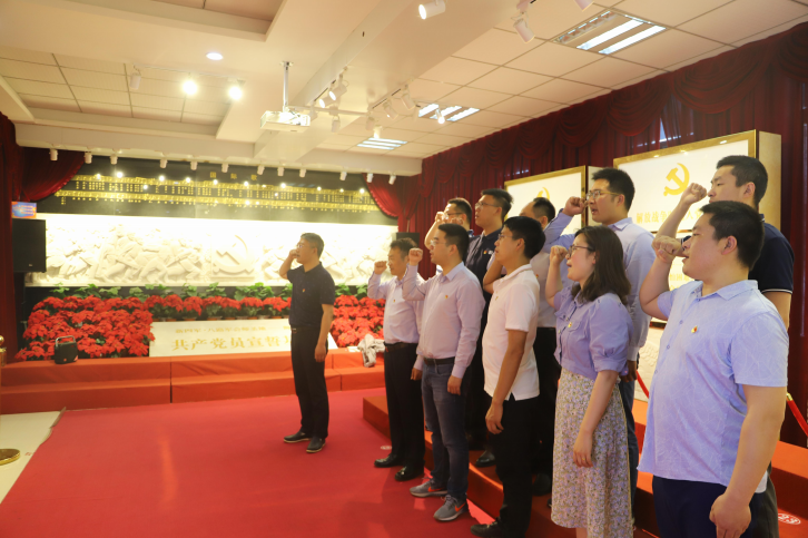 在曹書記的帶領(lǐng)下,黨員干部們依次參觀了會師展覽館、口述歷史室等場館,黨員干部們認真聆聽曹書記的講解,不時駐足仔細觀看展板內(nèi)容和檔案文獻。在黨員宣誓室,支部書記周宏奎帶領(lǐng)全體黨員重溫入黨誓詞,面對鮮紅的黨旗,黨員們舉起右手莊嚴宣誓,再次感受了令人激動的入黨時刻,提醒自己不忘初心,牢記使命,履行誓言。在多功能宣教室,曹書記上了一堂生動而深刻的特別黨課。大家聆聽了新四軍在蘇中浴血奮戰(zhàn)的革命事跡介紹,了解到八路軍、新四軍獅子口勝利會師的偉大歷史,對老一輩無產(chǎn)階級革命家的革命歷程和無私奉獻精神有了更深的體會與感受。最后,支部書記周宏奎在總結(jié)講話中要求,全體黨員要繼承和發(fā)揚艱苦奮斗、勵精圖治的革命傳統(tǒng),繼承和發(fā)揚同心同德、開拓創(chuàng)新的革命精神,創(chuàng)新思維、埋頭苦干、奮發(fā)有為、拿出擔(dān)當(dāng),積極投身到轉(zhuǎn)型升級高質(zhì)量發(fā)展中去。