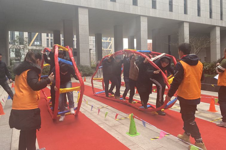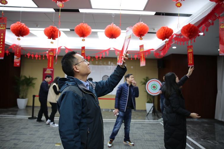 本次聯(lián)誼會活動內(nèi)容豐富,設(shè)“膝蓋夾硬幣”“投壺”“成語傳真”等8個趣味小游戲,摜蛋、拔河等3個競技比賽項目和職工包餃子迎新年系列活動?;鸺t的展板、喜慶的燈籠、漂亮的窗花、各式各樣的氣球,活動現(xiàn)場布置得溫馨喜慶。