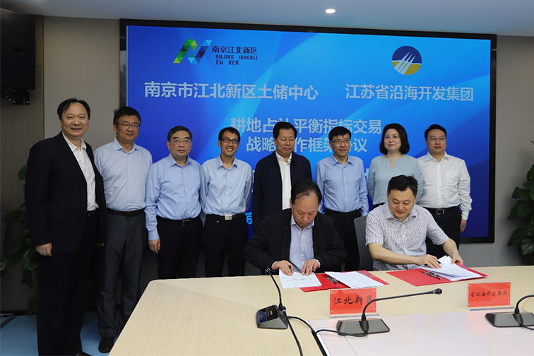 為積極落實全省沿海發(fā)展座談會精神,搶抓國家和省委重點推進江北新區(qū)發(fā)展的戰(zhàn)略機遇,省沿海集團與江北新區(qū)在去年簽訂全面戰(zhàn)略合作協(xié)議基礎(chǔ)上,繼續(xù)推進深化合作,5月26日,雙方在江北新區(qū)管委會簽署了“十四五”期間耕地占補平衡指標交易戰(zhàn)略合作框架協(xié)議。省沿海集團黨委書記、董事長鄧東升與南京市江北新區(qū)管委會黨工委委員、常務(wù)副主任周金良出席簽約儀式。