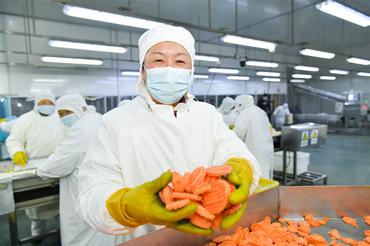 隨著中央廚房、連鎖餐飲、外賣(mài)平臺(tái)等餐飲服務(wù)新業(yè)態(tài)的興起以及冷鏈運(yùn)輸網(wǎng)絡(luò)的完善,為果蔬速凍加工產(chǎn)業(yè)發(fā)展帶來(lái)機(jī)遇。在如東,所屬耕洋公司作為特色果蔬深加工企業(yè),2022年底,擁有了年規(guī)模4.5萬(wàn)噸的冷凍果蔬加工、倉(cāng)儲(chǔ)優(yōu)質(zhì)資產(chǎn),完善了果蔬種植、加工和銷(xiāo)售的產(chǎn)業(yè)鏈。新年開(kāi)工,生產(chǎn)車(chē)間設(shè)備進(jìn)行全方位清掃和檢修提前準(zhǔn)備到位,生產(chǎn)線上輕快跳躍著西蘭花、毛豆莢、胡蘿卜等速凍凈菜,這些蔬菜打包過(guò)后供應(yīng)國(guó)內(nèi)外市場(chǎng),讓沿海味道走向更遠(yuǎn)地方。